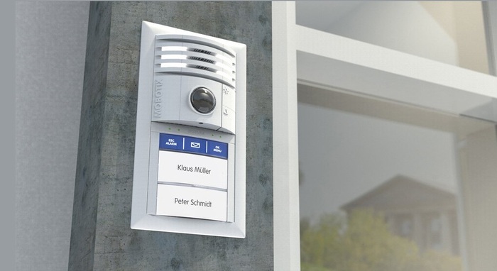 - Функционал контроля доступа обеспечивают различные модули для дверного коммуникатора, в числе которых базовые модули звонка и клавиатуры на выбор. Так, погодозащищенный модуль звонка снабжен считывателем RFID-карт MIFARE, обеспечивающим доступ для посетителя без применения ключа. В числе дополнительных возможностей, которые предоставляет IP-видеодомофон, – отправка сообщений. Нажав кнопку звонка, посетитель может оставить сообщение для хозяина, которое он получит дома или через мобильное приложение.